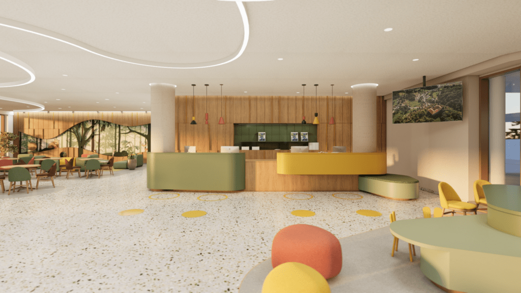 Výrazným prvkem hotelu je 9 metrů vysoká lezecká síť umístěná v prostoru recepce, která slouží jako centrální herní atrakce. Na jednotlivých patrech se nacházejí interaktivní stěny, které propojují pohyb, hru a učení.