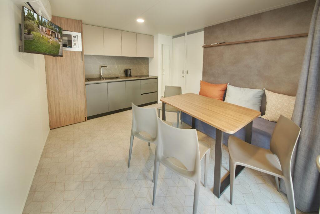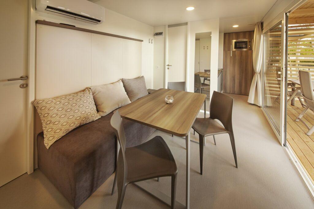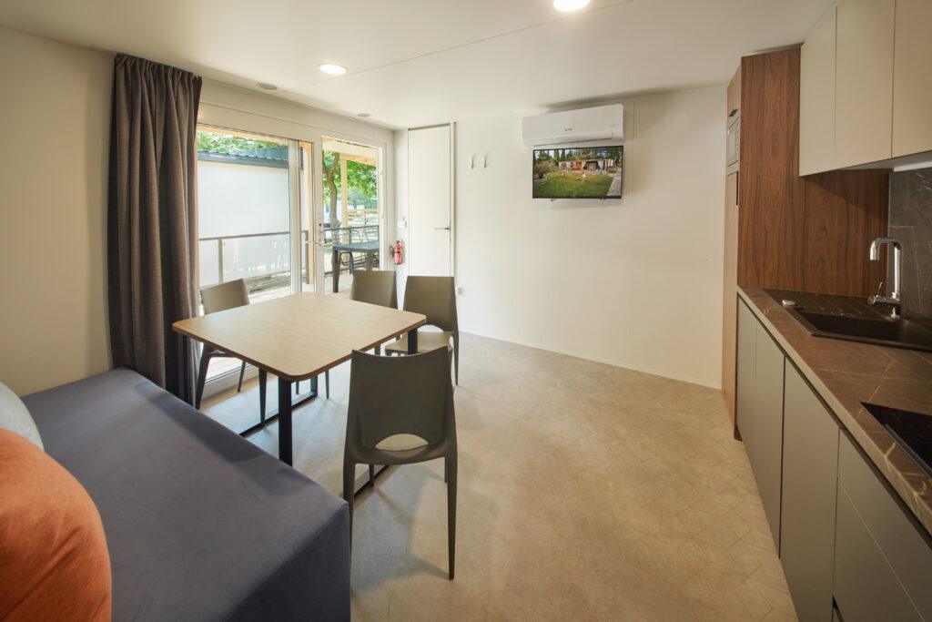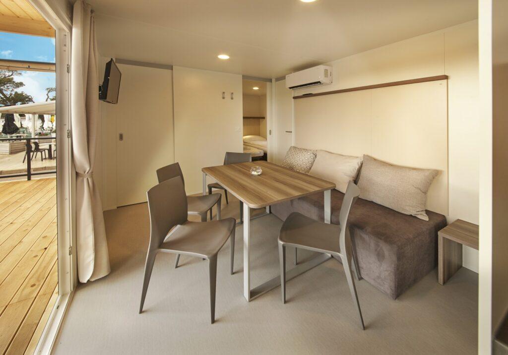 Mobilní domy leží jen pár kroků od moře a jsou ideálním ubytováním pro rodiny nebo skupiny, které si chtějí dopřát pohodlné ubytování v přírodě.