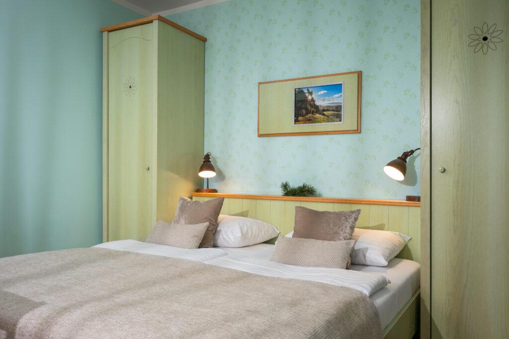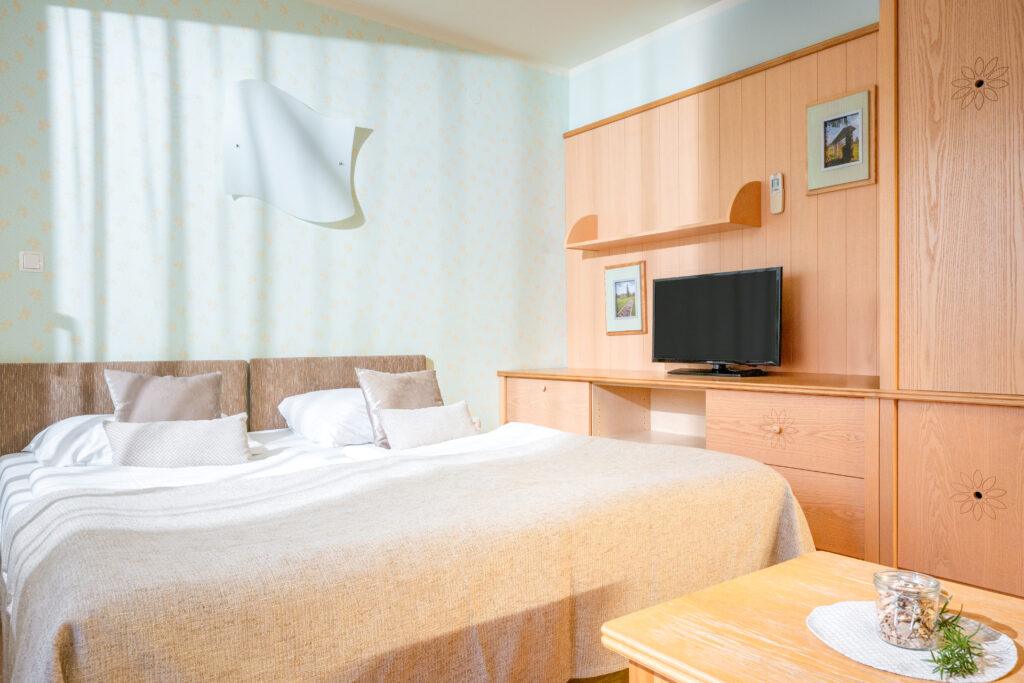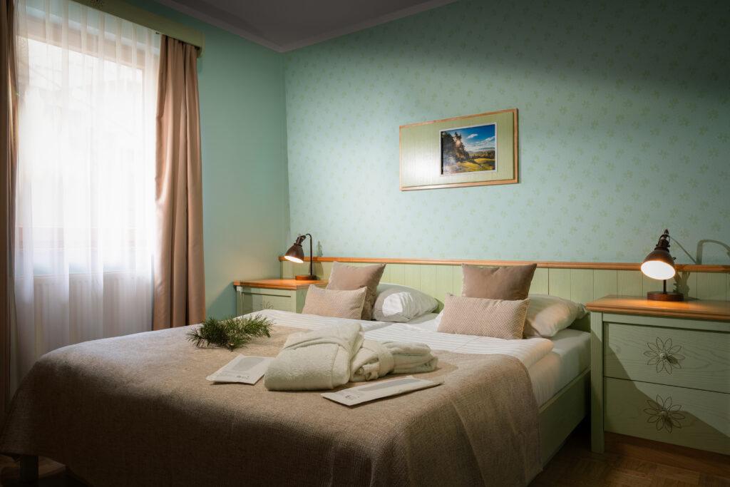 Dvoulůžkové pokoje jsou vybavené manželskou postelí nebo dvěma oddělenými postelemi, koupelnou se sprchovým koutem a toaletou. Všechny pokoje disponují i satelitní TV. Za příplatek je možné se ubytovat v pokoji s balkonem s výhledem.