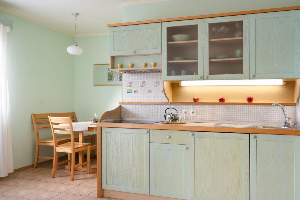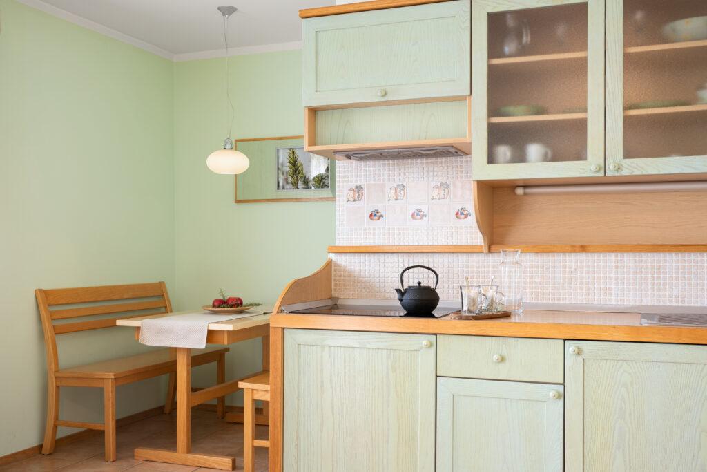 Manželská postel nebo dvě oddělené postele, kuchyně s jídelním koutem, koupelna se sprchovým koutem, TV, balkon/terasa.Rodinný apartmán A4
